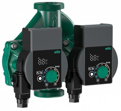 - Twin-head pump for individual (Δp-c, Δp-v and constant speed) or parallel (Δp-c and constant speed) operation